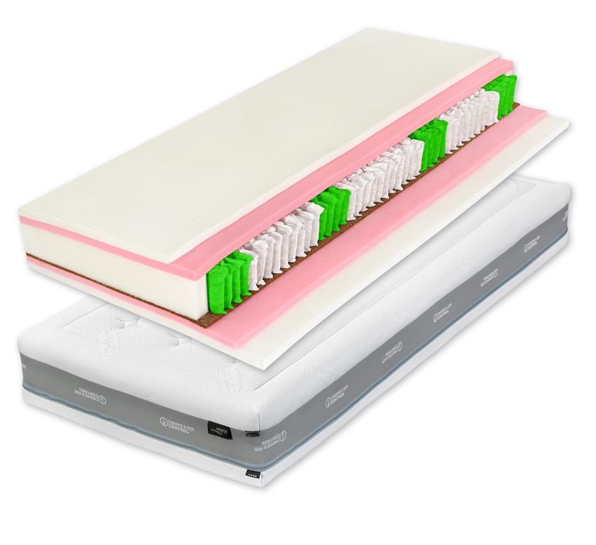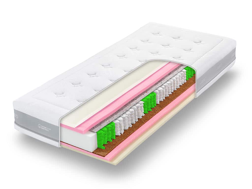 Materac z wieloma kieszeniami sprężynowymi i lateksem. Solidny materac partnerski łączący najlepsze materiały dla zdrowego snu. Miękkość lateksu, przewiewność pianki zimnej, stabilność kokosu i maksymalny komfort unikalnego rdzenia sprężynowego MultiPocket = przewiewność, doskonałe właściwości ortopedyczne, komfort snu i odporność. Odpowiednie ułożenie na pewnej płycie, twardych stelażach materiałowych i listwowych. Luksusowy pokrowiec z naturalnymi włóknami Tencel® Lyocell® o doskonałej termoregulacji.