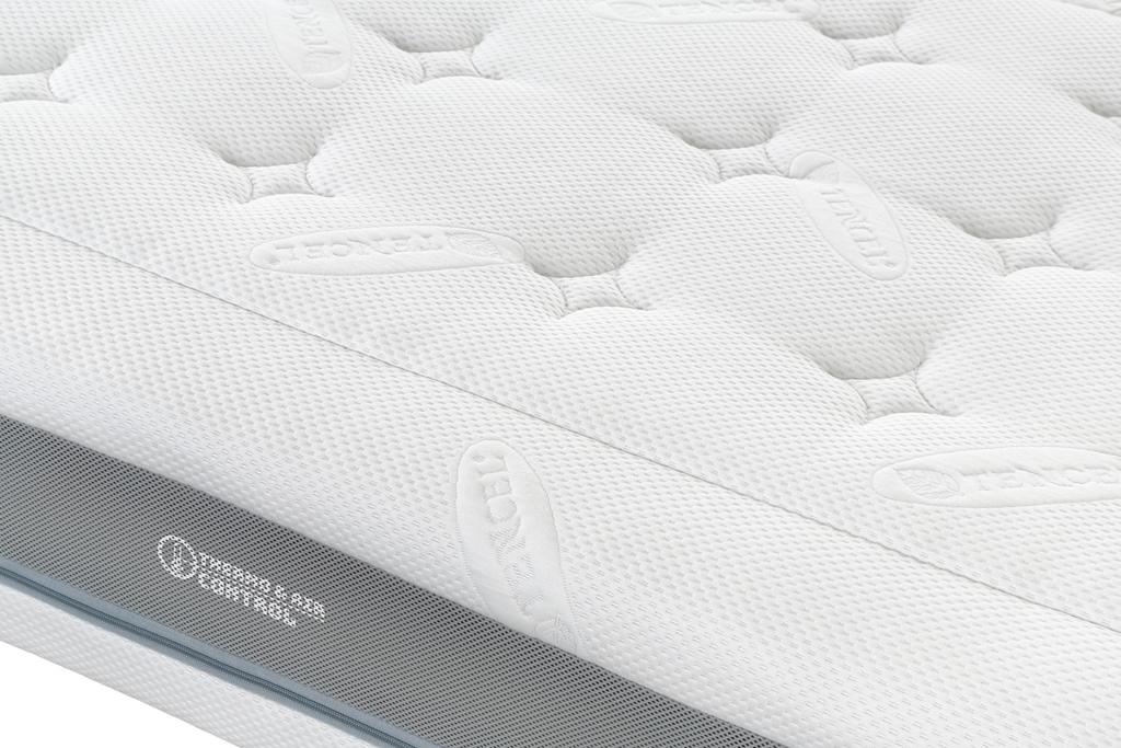 - Thermo&Air Control. Żadna sztuczka. Specjalny system wentylacyjny pokrowca doskonale współpracuje z rdzeniem materaca. Zapewnia termoregulację, co oznacza sen bez przegrzewania, pocenia się czy nadmiernego chłodzenia. Pomaga utrzymać łóżko suche i higienicznie czyste.