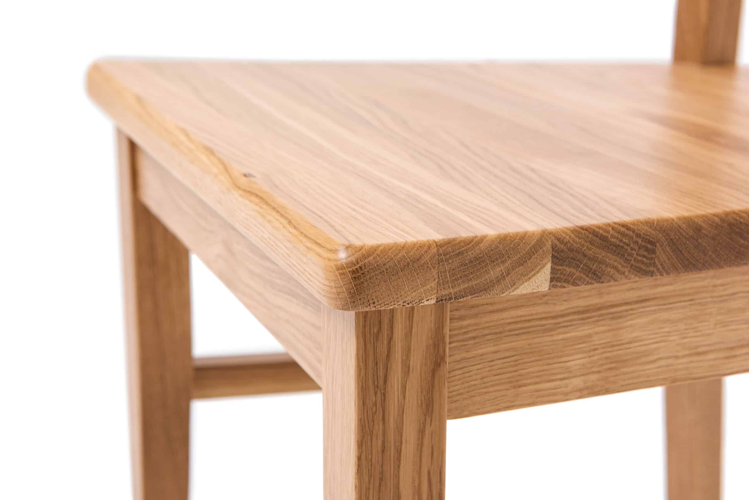 Oferujemy Państwu ekskluzywne krzesło do jadalni z gładkim dębowym siedziskiem, które jest wykonane z litego dębu w lakierowanym wykończeniu. Krzesło to zostało wykonane wyłącznie z wyselekcjonowanego litego drewna dębowego, co gwarantuje doskonałą wytrzymałość i dużą stabilność.