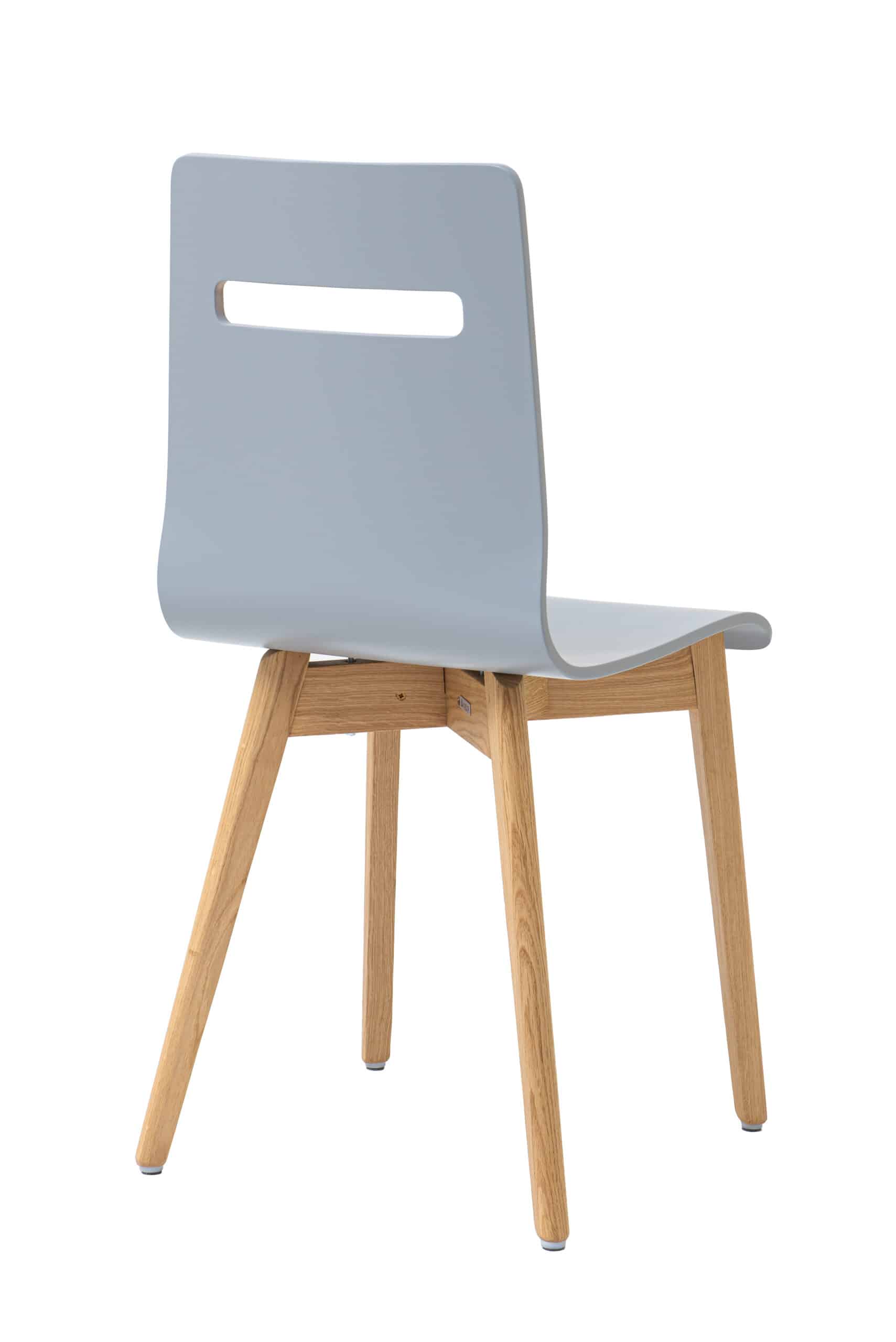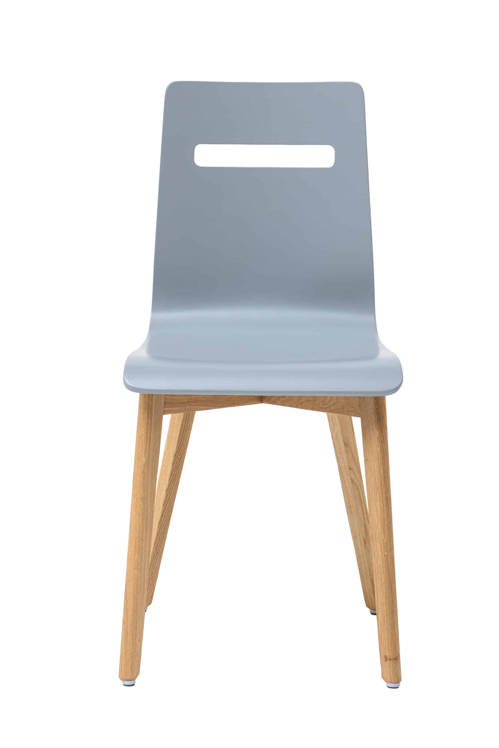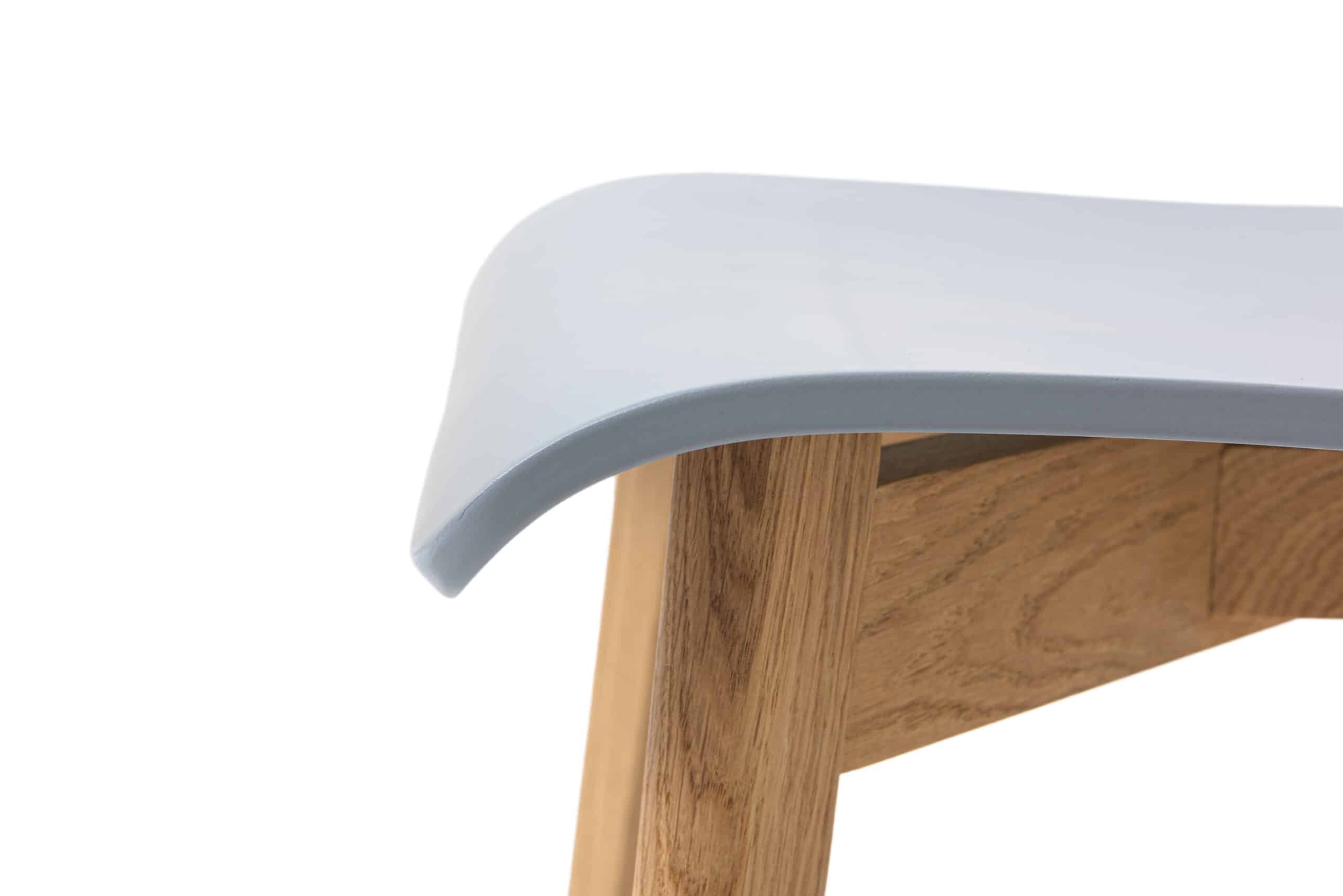 Drewniane krzesło do jadalni Mia szara to idealny dodatek do Waszej kuchni lub jadalni. Dębowa rama wykonana z litego drewna w stylu skandynawskim tworzy domową atmosferę. Dąb to jeden z najtwardszych materiałów tradycyjnie stosowanych w meblarstwie, gwarantuje trwałość i solidność krzesła.
