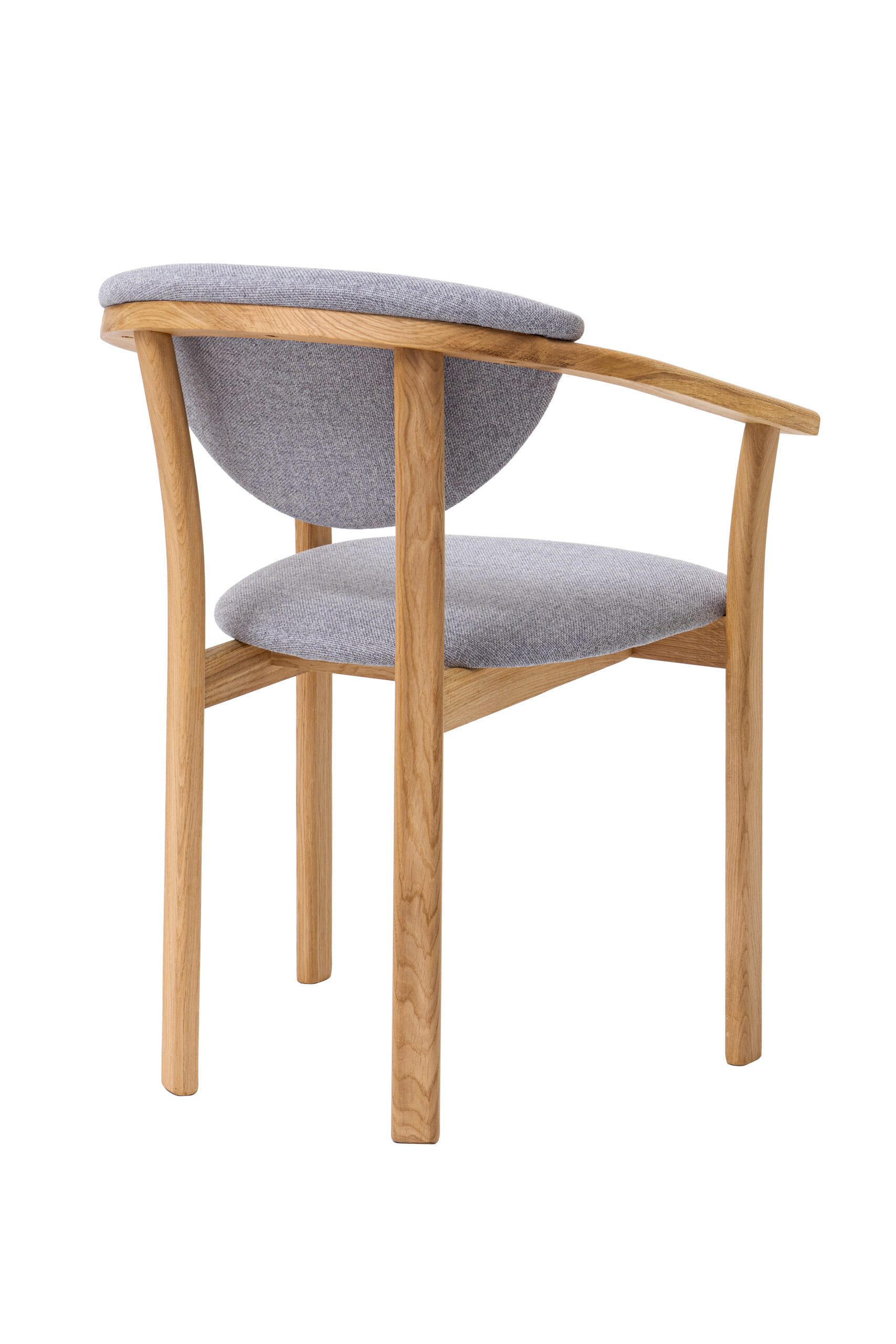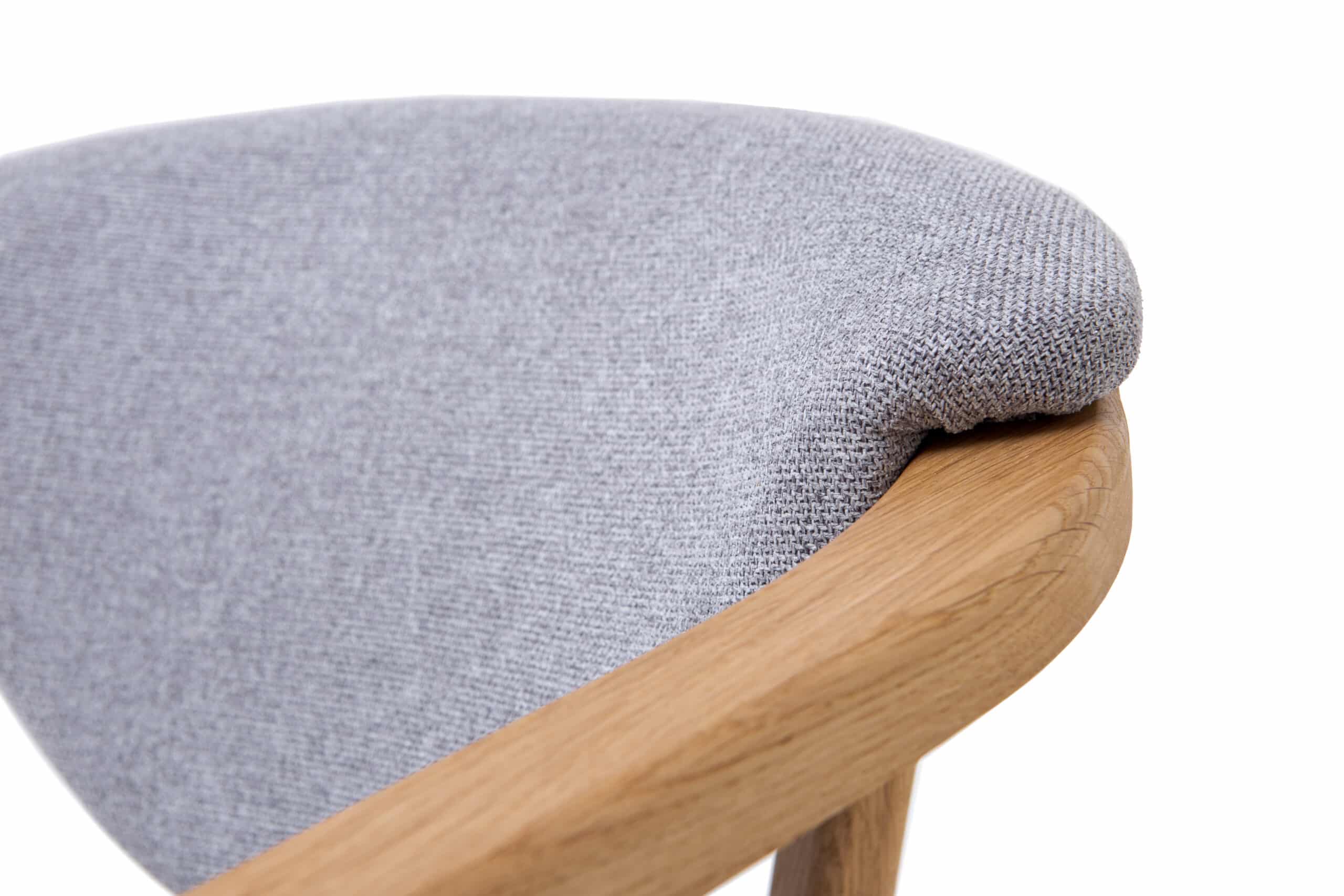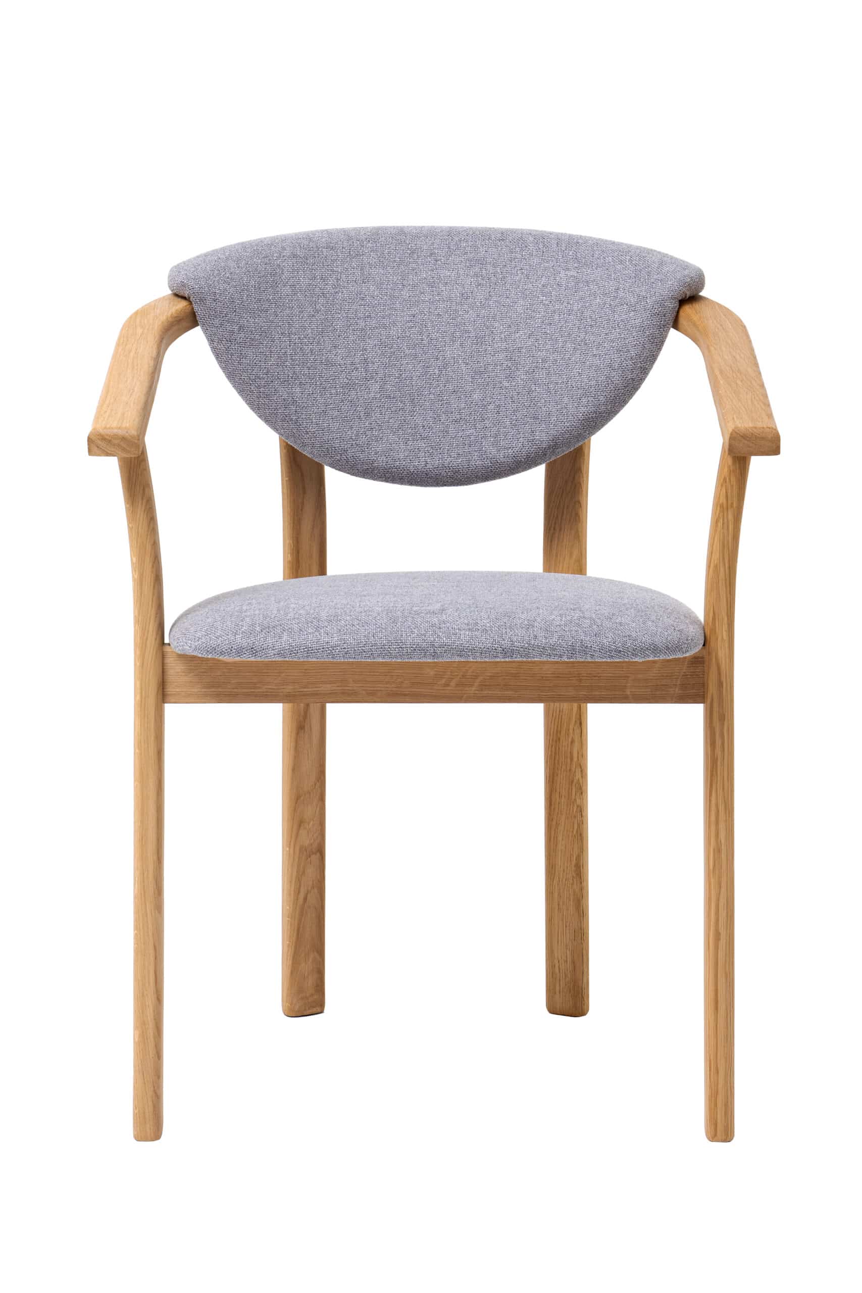 Drewniane krzesło z podłokietnikami Alexis z szarej tkaniny. To wysokiej jakości dębowe krzesło zapewni Państwu maksymalny komfort i styl w domu, restauracji lub kawiarni.