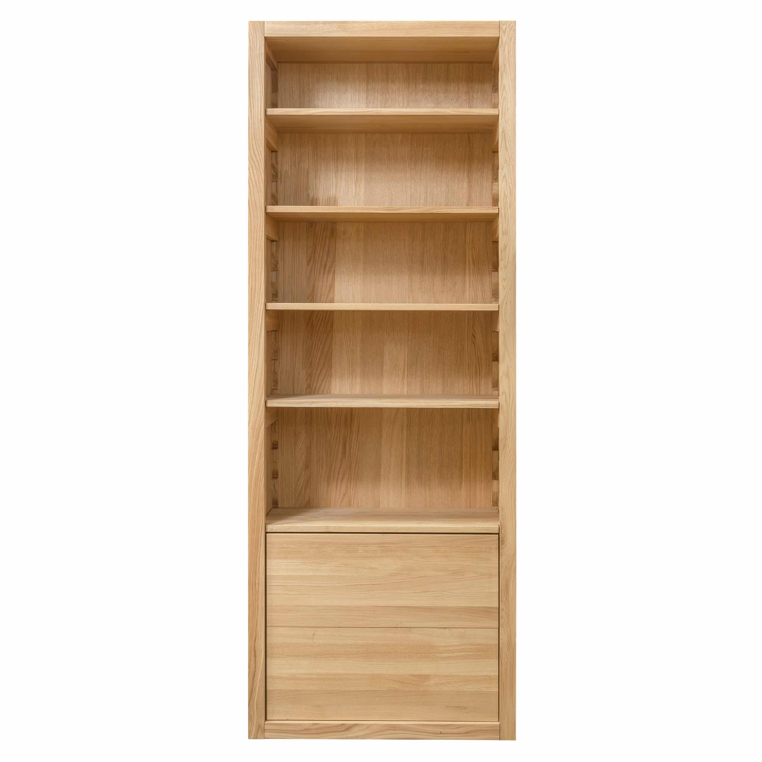 Regał na książki z litego dębu Funny 11 wniesie do Państwa wnętrza naturalną elegancję i ponadczasowy styl. Dzięki regulowanym półkom i praktycznym szufladom z systemem Tip-on oferuje idealne połączenie designu i funkcjonalności. Solidne drewno dębowe zabezpieczone olejem Borma Wachs gwarantuje długą żywotność i wyjątkowy wygląd każdego egzemplarza.