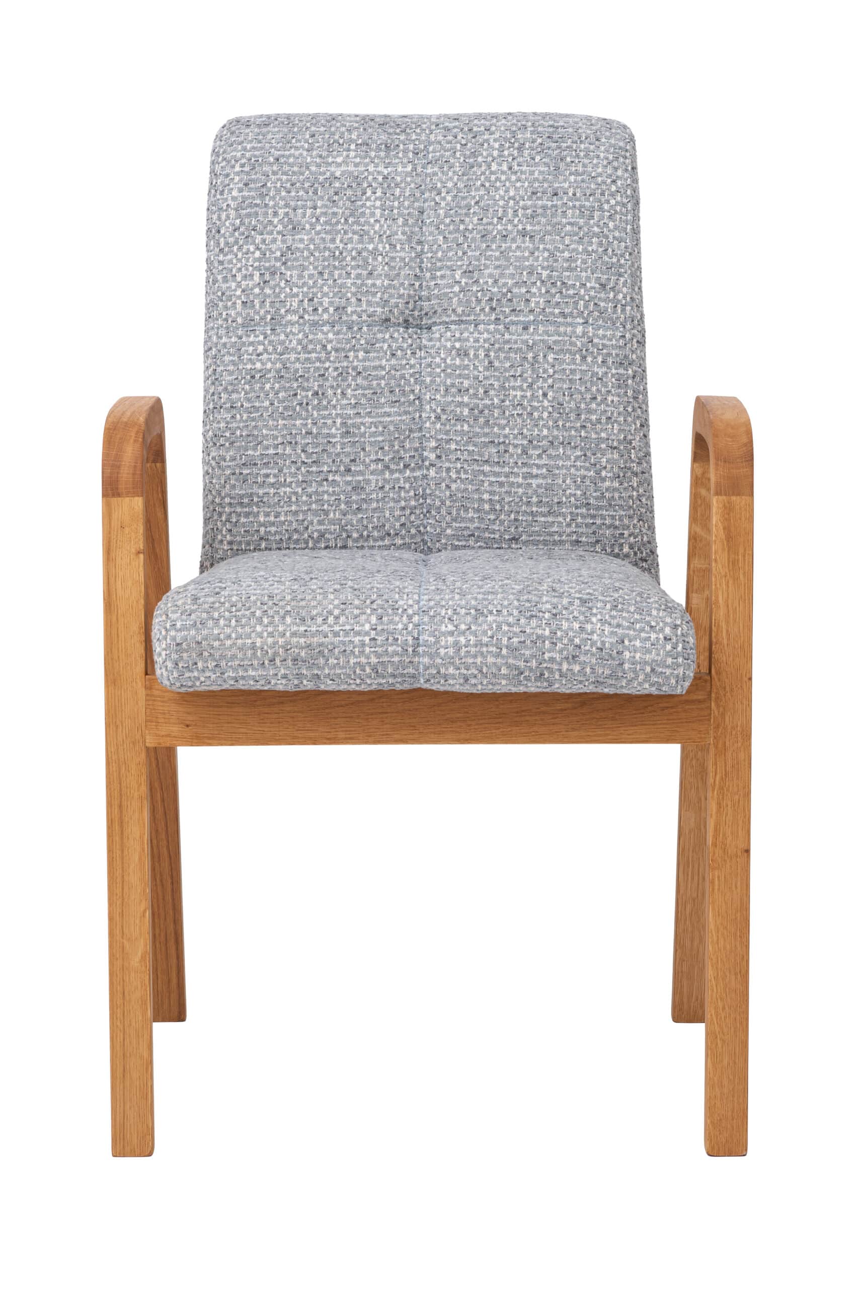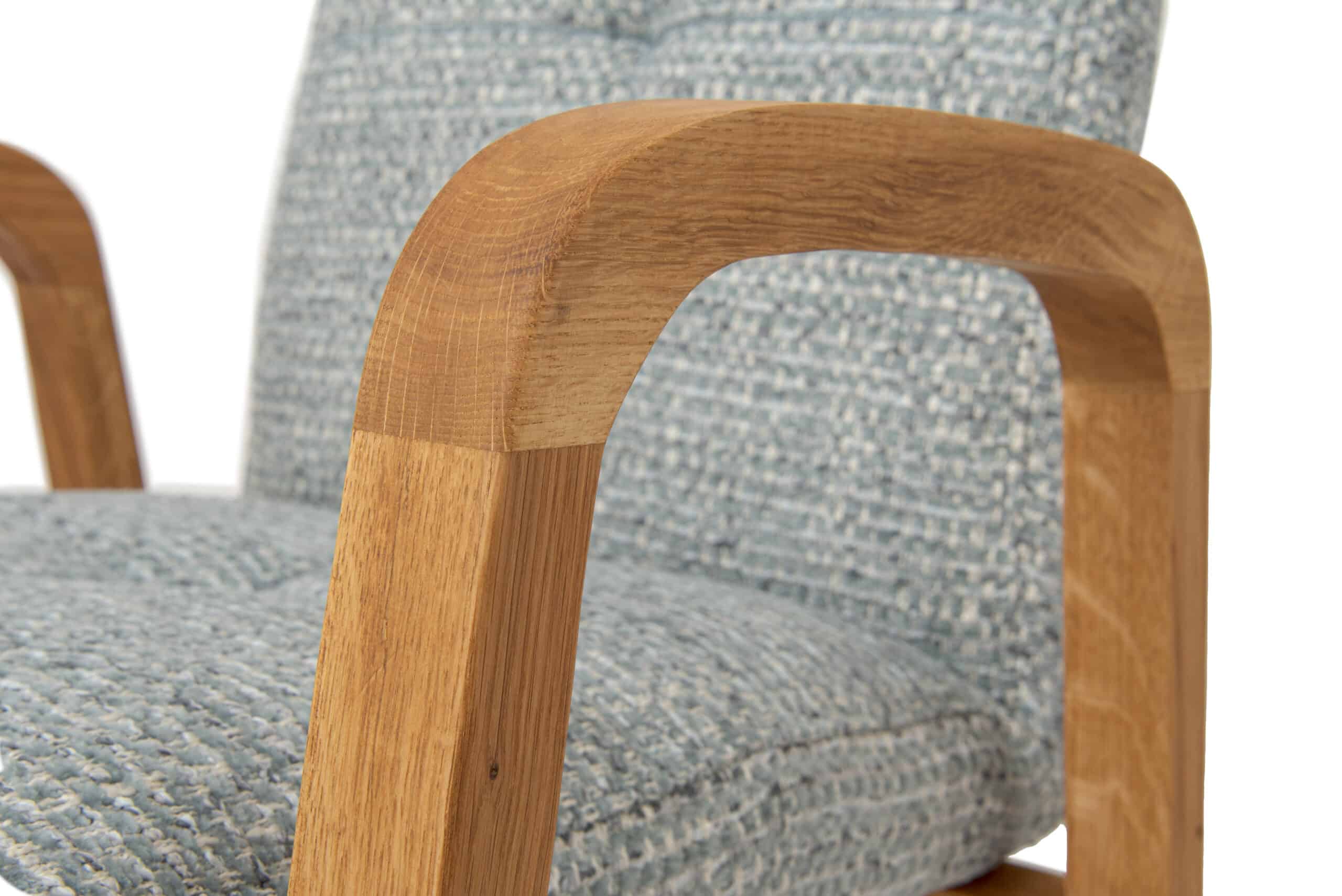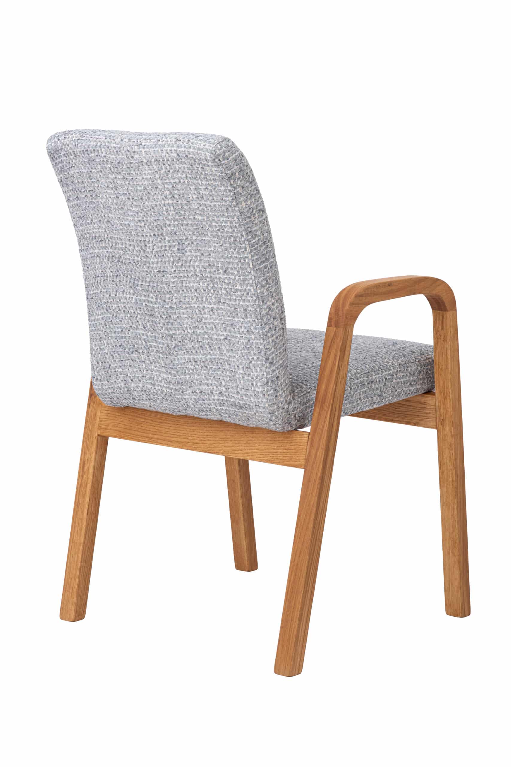 Podstawą krzesła jest solidna konstrukcja z masywnego drewna dębowego, znanego ze swojej wytrzymałości i długiej żywotności. Wykończenie naturalnym olejem chroni drewno przed codziennym zużyciem i jednocześnie podkreśla jego unikalny rysunek i ciepły odcień. Precyzyjne wykonanie wszystkich połączeń gwarantuje stabilność i niezawodność nawet przy długotrwałym użytkowaniu.