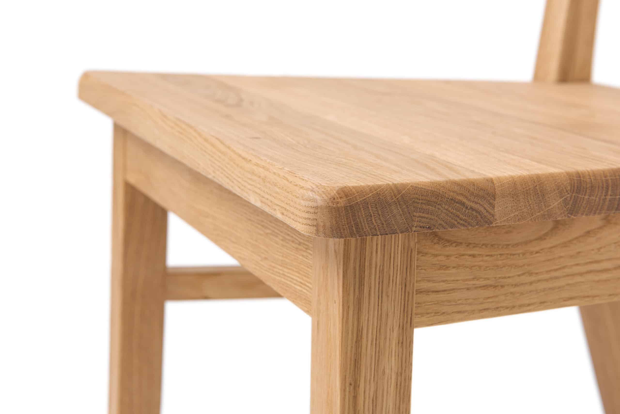 1. Materiały najwyższej jakości: Krzesło wykonane jest z litego drewna dębowego, zabezpieczone olejem, co zapewnia trwałość i zachowanie doskonałego wyglądu.