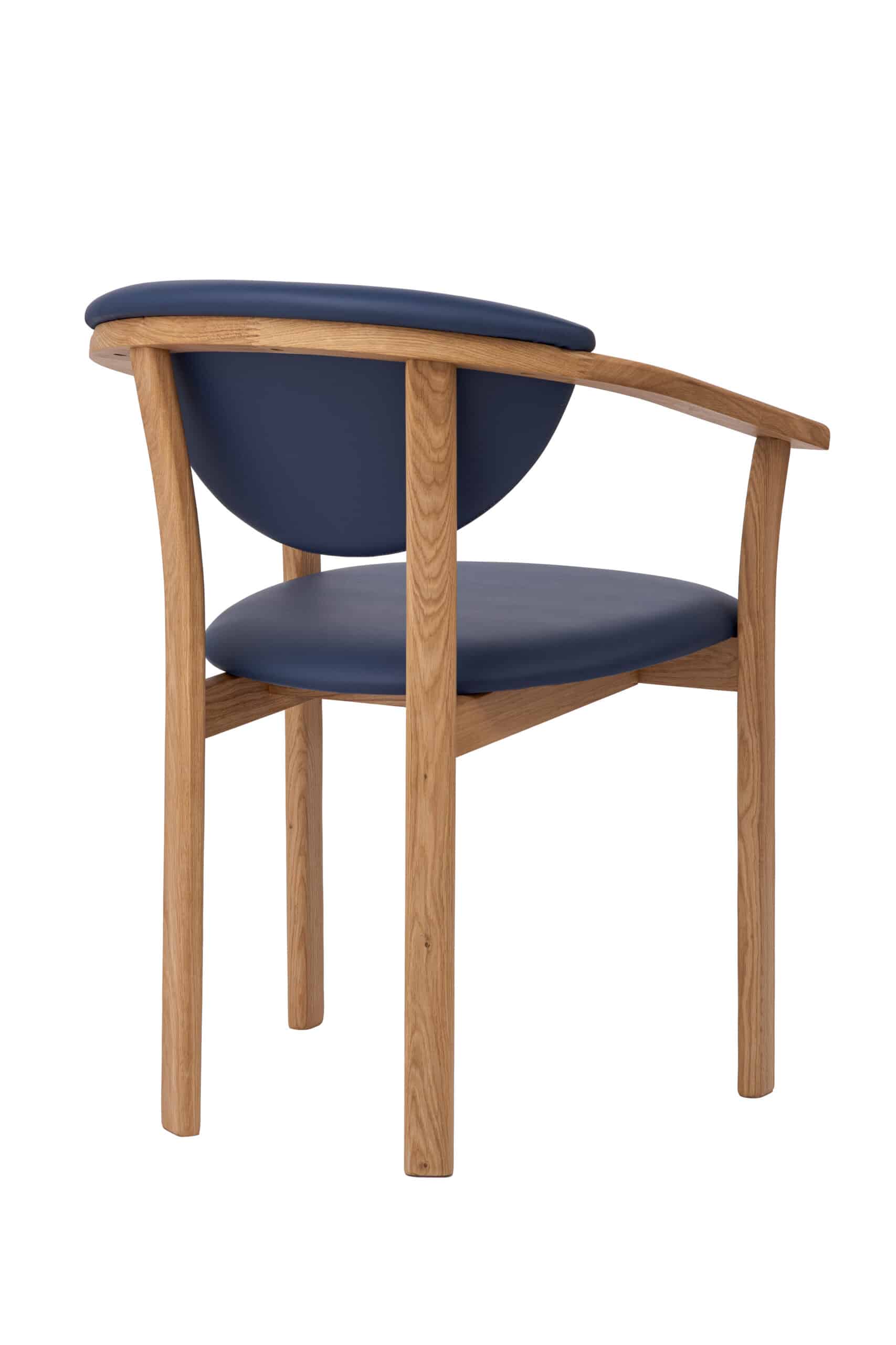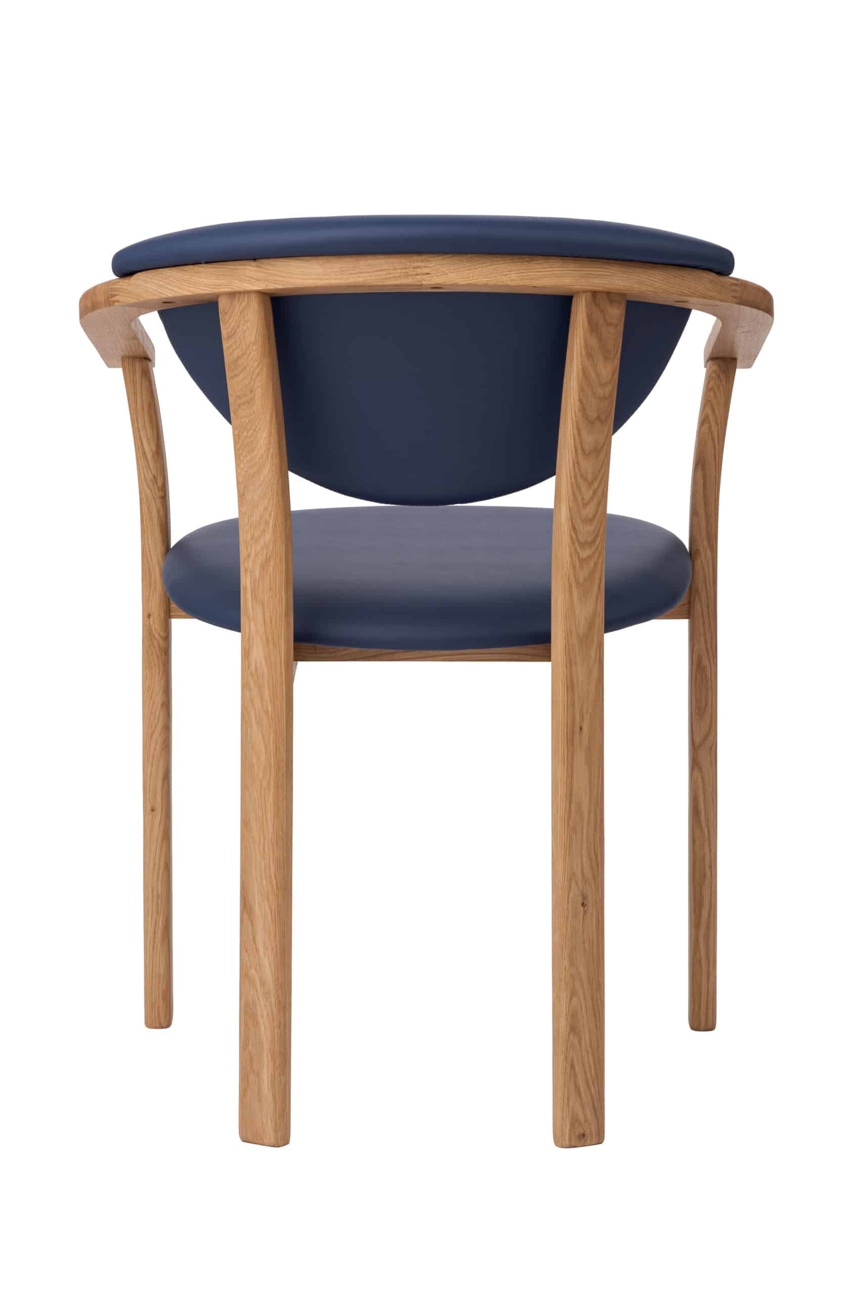Krzesło Alexis wyróżnia się ponadczasowym designem, który łączy naturalne drewno dębowe z wyrazistą niebieską tapicerką z ekoskóry. Czyste linie, delikatnie wyprofilowane podłokietniki i ergonomiczne oparcie tworzą harmonijną całość, która prezentuje się elegancko i nowoczesne. Niebieska ekoskóra nadaje krzesłu indywidualny charakter i staje się stylowym elementem każdego wnętrza.