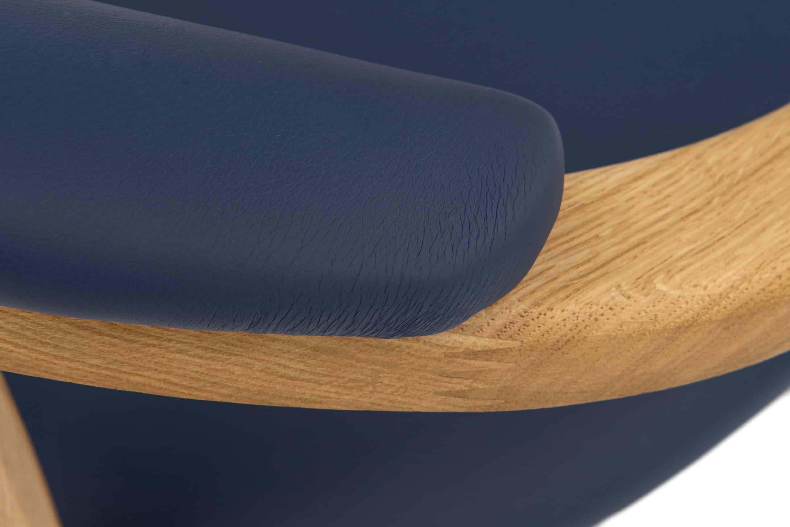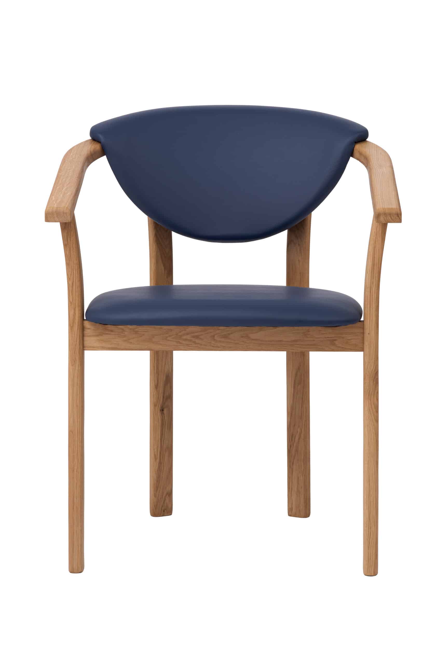 Drewniane krzesło z podłokietnikami Alexis niebieska ekoskóra