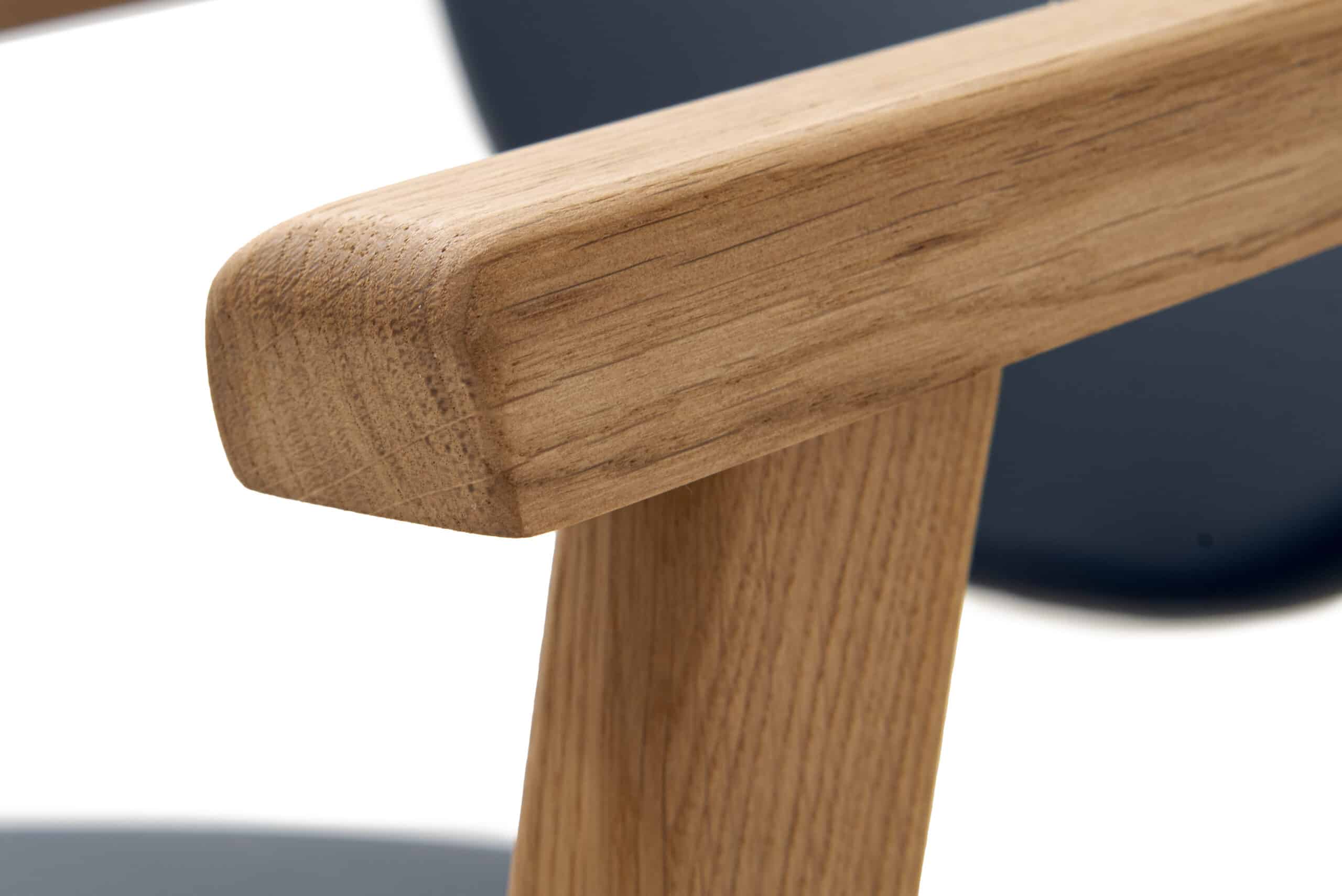 Konstrukcja krzesła wykonana jest z najwyższej jakości litego drewna dębowego, co gwarantuje wysoką wytrzymałość i odporność. Wykończenie olejem i woskiem marki Borma Wachs chroni drewno przed zużyciem, zarysowaniami oraz codziennym użytkowaniem, jednocześnie podkreślając jego naturalne usłojenie.
