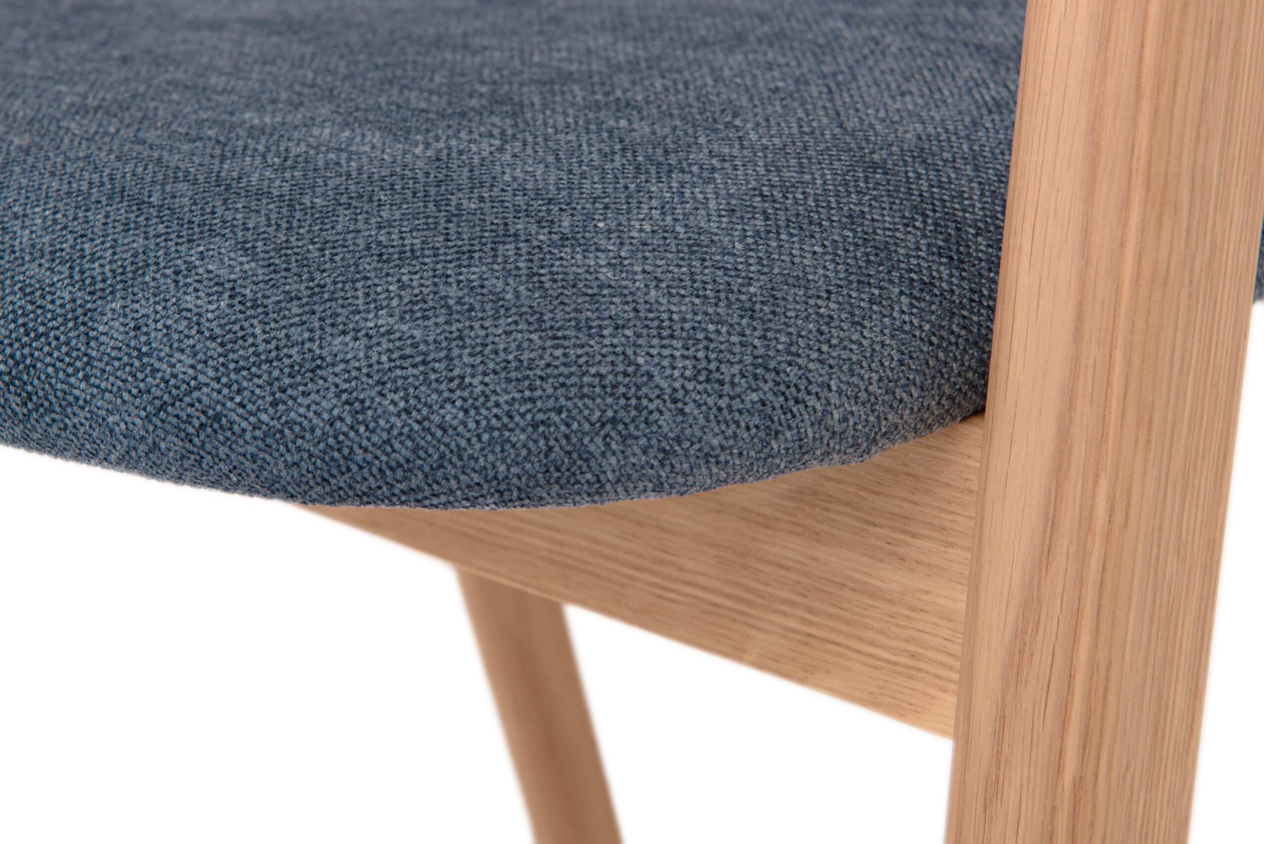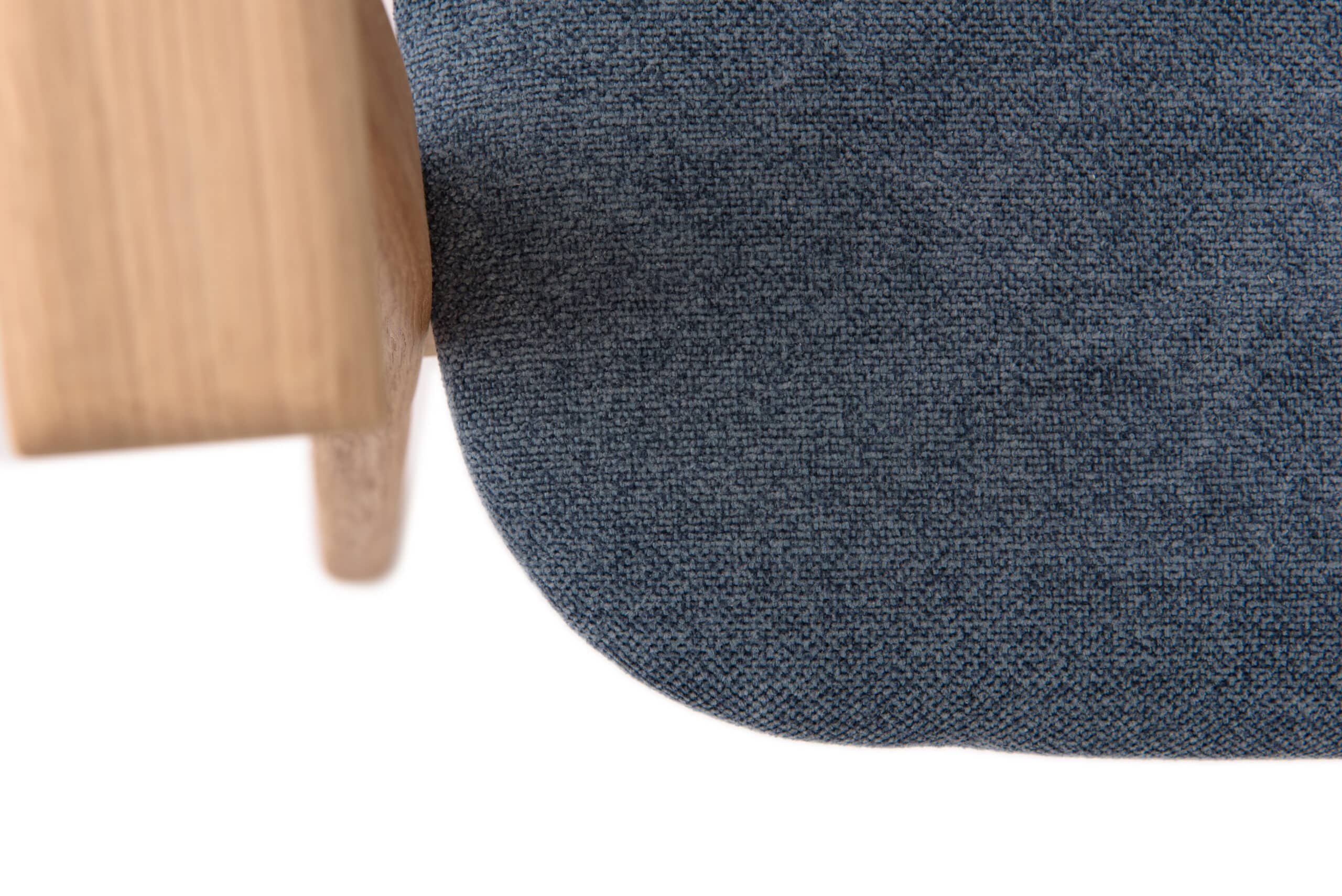 Drewniane krzesło z podłokietnikami Alexis niebieska tkanina – nowoczesny design z naturalnym akcentem