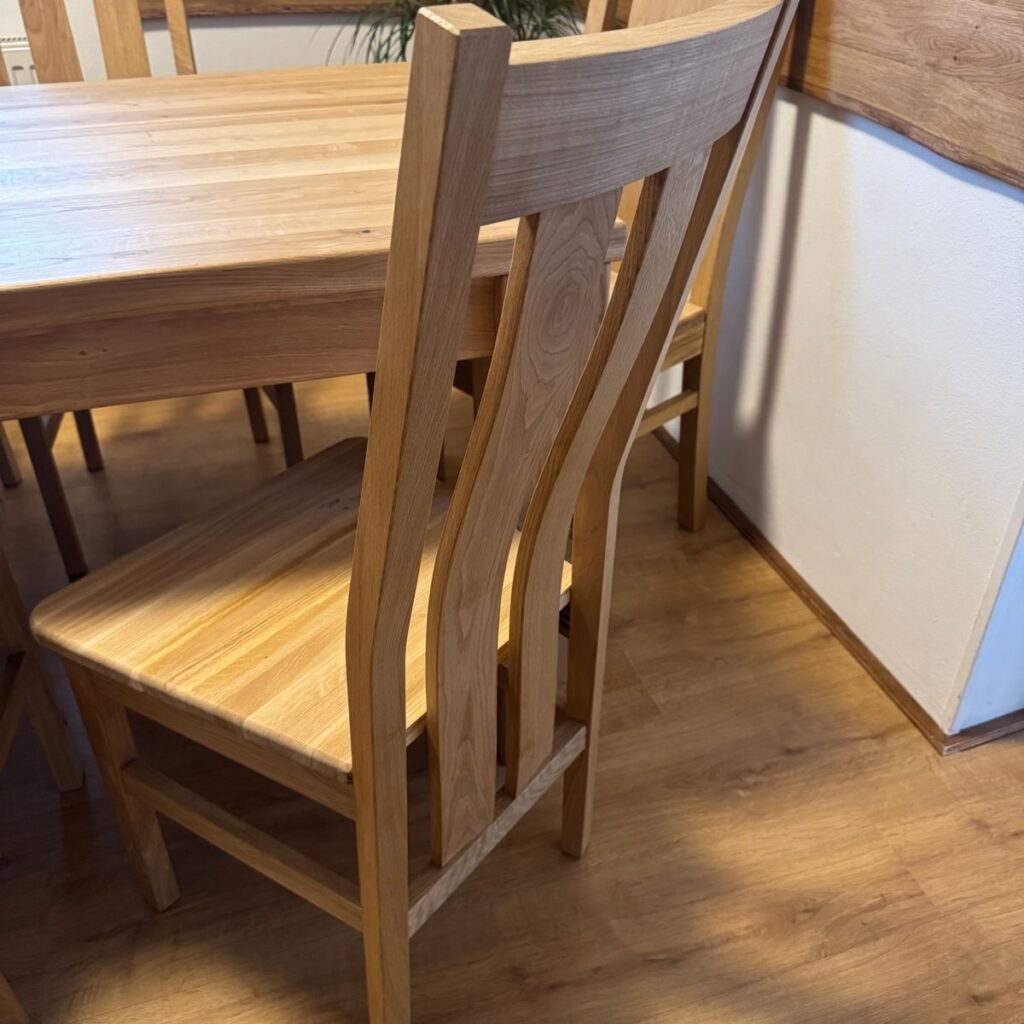 Nasze krzesło wykonane jest ze starannie wyselekcjonowanego litego drewna dębowego, które gwarantuje wyjątkową wytrzymałość i długowieczność. Dąb jest symbolem siły i trwałości, a nasze krzesło jest tego dowodem. Żadnych kompromisów, tylko uczciwe rzemiosło. Krzesło zostało zaprojektowane tak, aby pasowało do standardowych stołów i zapewniało wygodne siedzenie. Dokładne wymiary znajdą Państwo na końcu opisu.