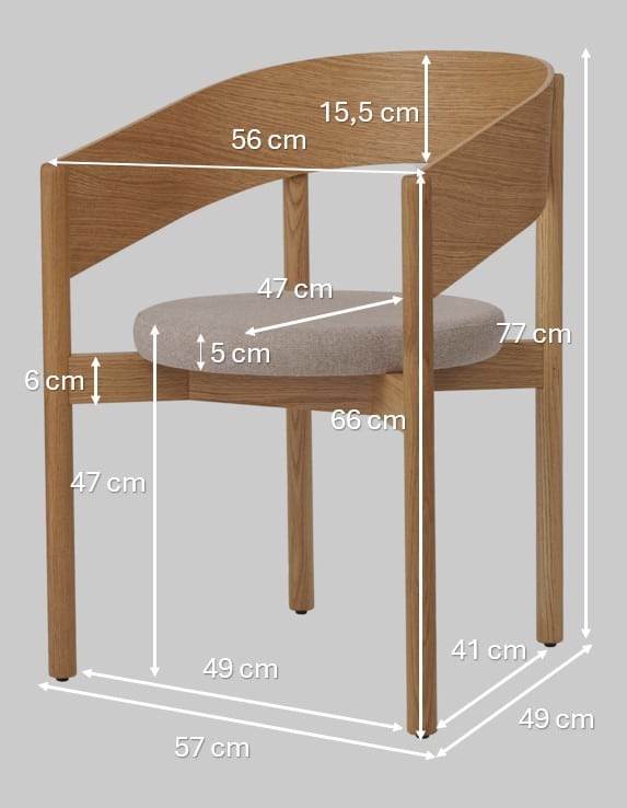 Dzięki neutralnemu beżowemu kolorowi i ponadczasowemu designowi krzesło z podłokietnikami Orbit łatwo wpasuje się w nowoczesne, skandynawskie i minimalistyczne wnętrza. Świetnie sprawdzi się przy stole jadalnianym, w kąciku do pracy oraz w stylowych przestrzeniach komercyjnych, takich jak kawiarnie, restauracje czy wnętrza hotelowe. Idealne dla osób poszukujących eleganckiego, wygodnego i uniwersalnego krzesła z naciskiem na naturalne materiały i czystą estetykę.