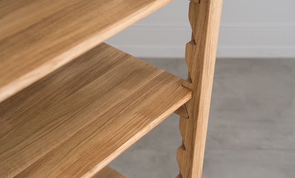 Proszę dodać regał Funny 1 do koszyka i zapewnić swojemu wnętrzu ponadczasowy design z litego dębu, który łączy elegancję, praktyczność i długą żywotność.