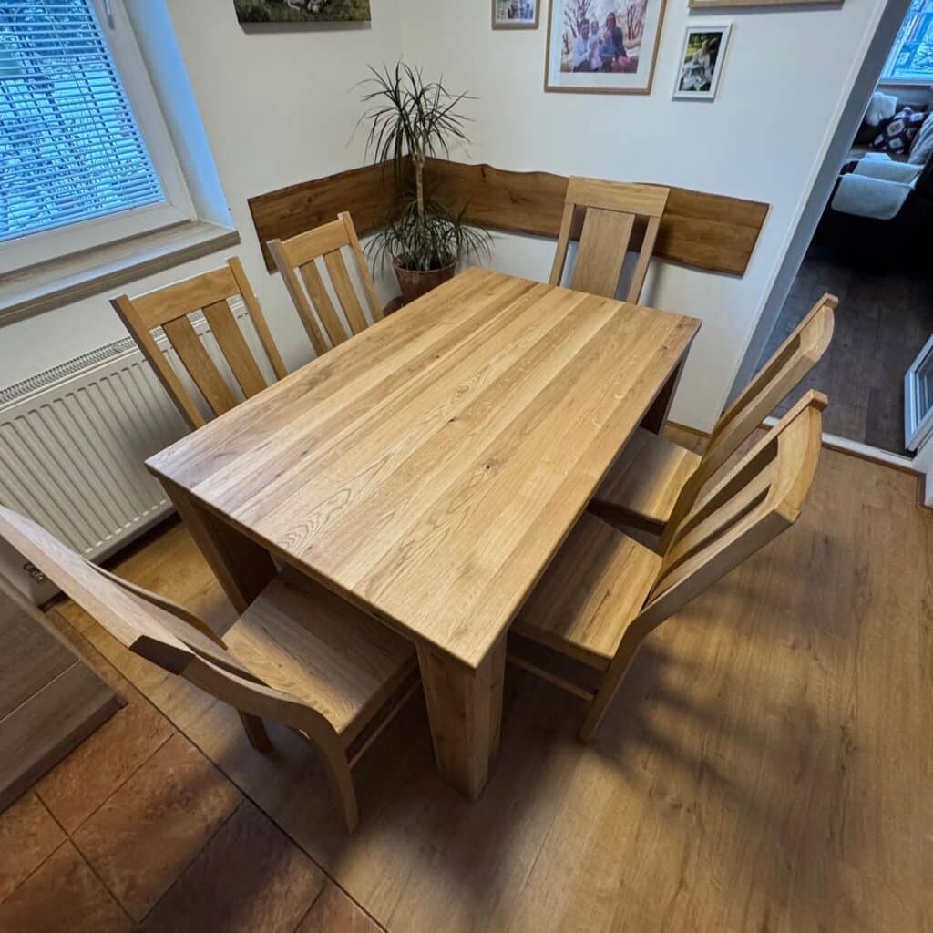 Oferujemy solidny i designerski stół wykonany wyłącznie z litego dębu, w olejowanym wykończeniem. Lite drewno nie tylko słynie z doskonałej jakości, ale także z długiej żywotności, co zapewnia, że ten stół posłuży przez wiele lat.