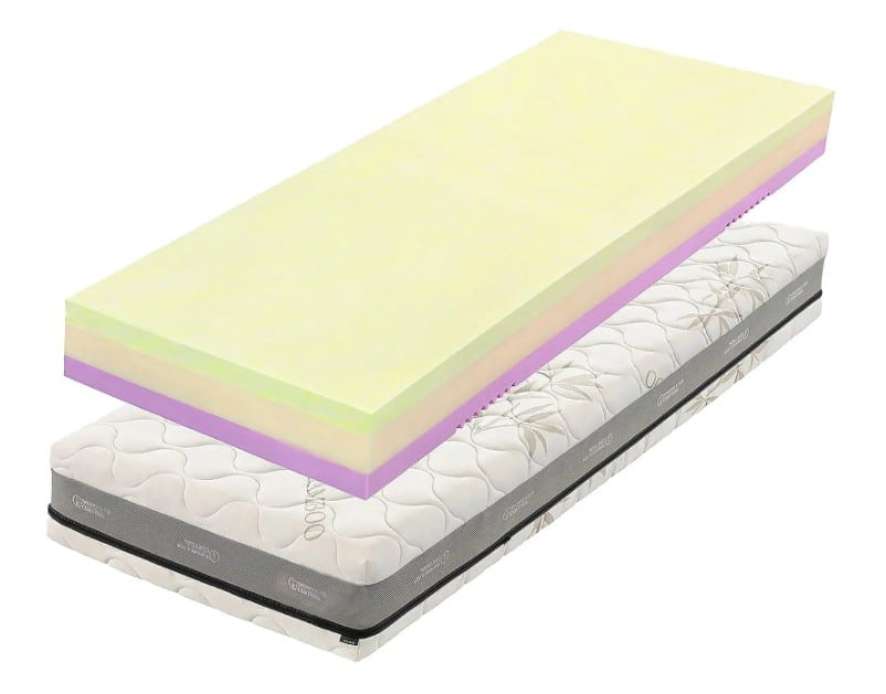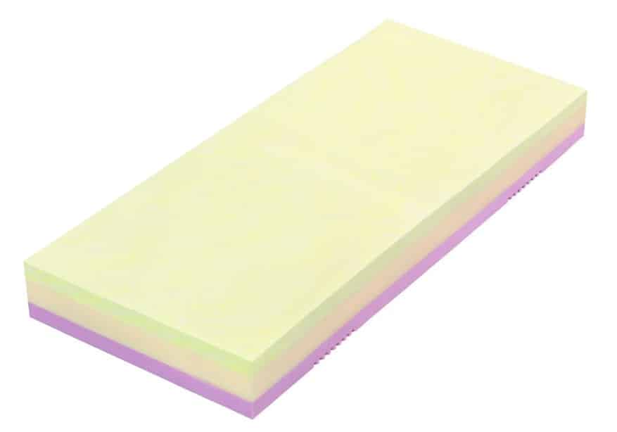 - Pianka z pamięcią kształtu (strona miękka) W kontakcie z ludzkim ciałem optymalizuje jego sztywność w zależności od pochłanianego ciepła, co gwarantuje optymalne dopasowanie materaca we wszystkich trybach spania.