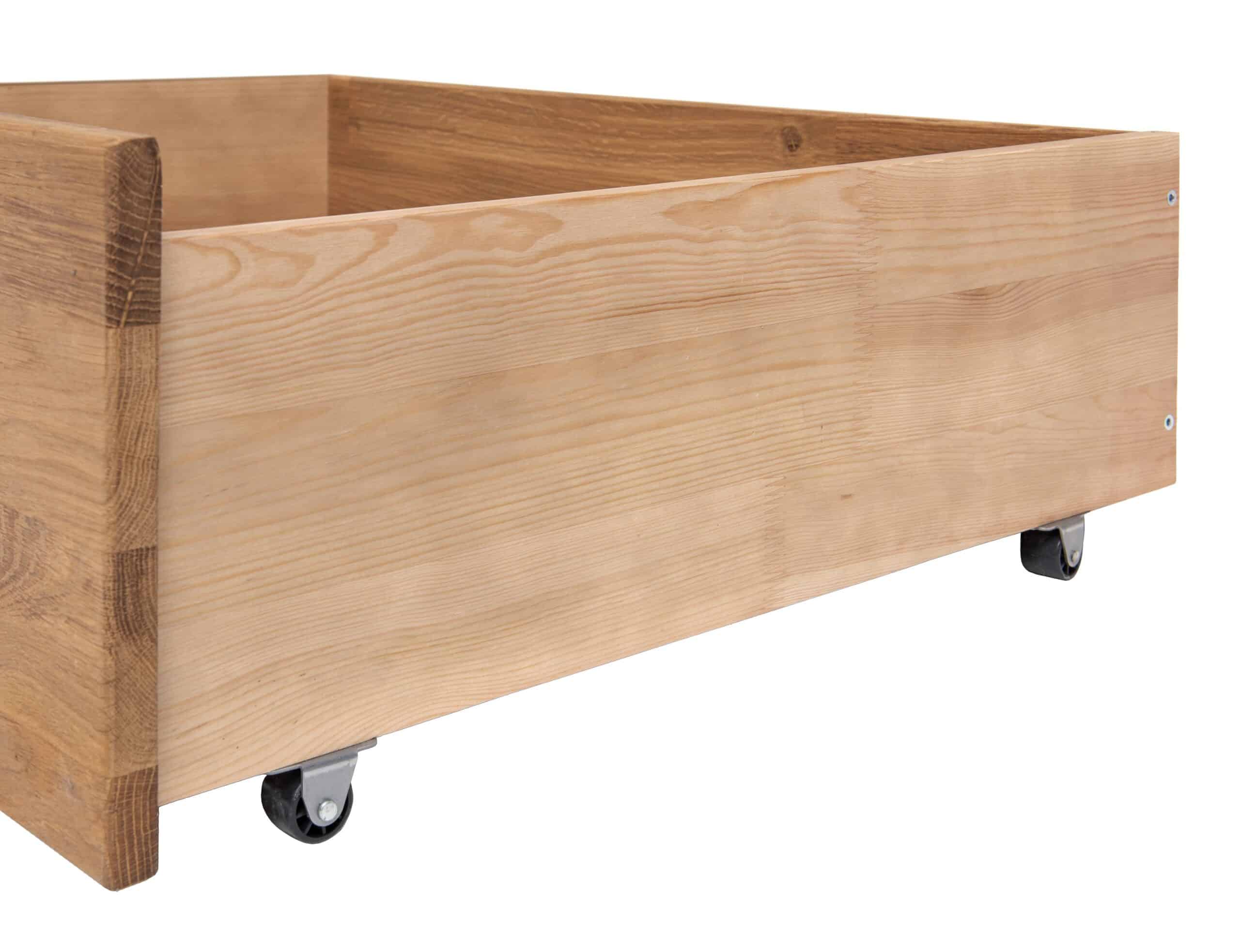 Idealne rozwiązanie dla osób, które chcą maksymalnie wykorzystać przestrzeń pod łóżkiem, zachowując przy tym estetykę naturalnego litego drewna.