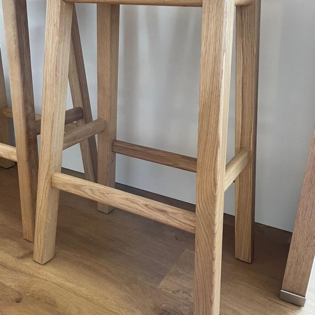 Oferujemy Państwu ekskluzywne wysokie krzesło barowe z litego drewna dębowego, które charakteryzuje się gładkim siedziskiem.